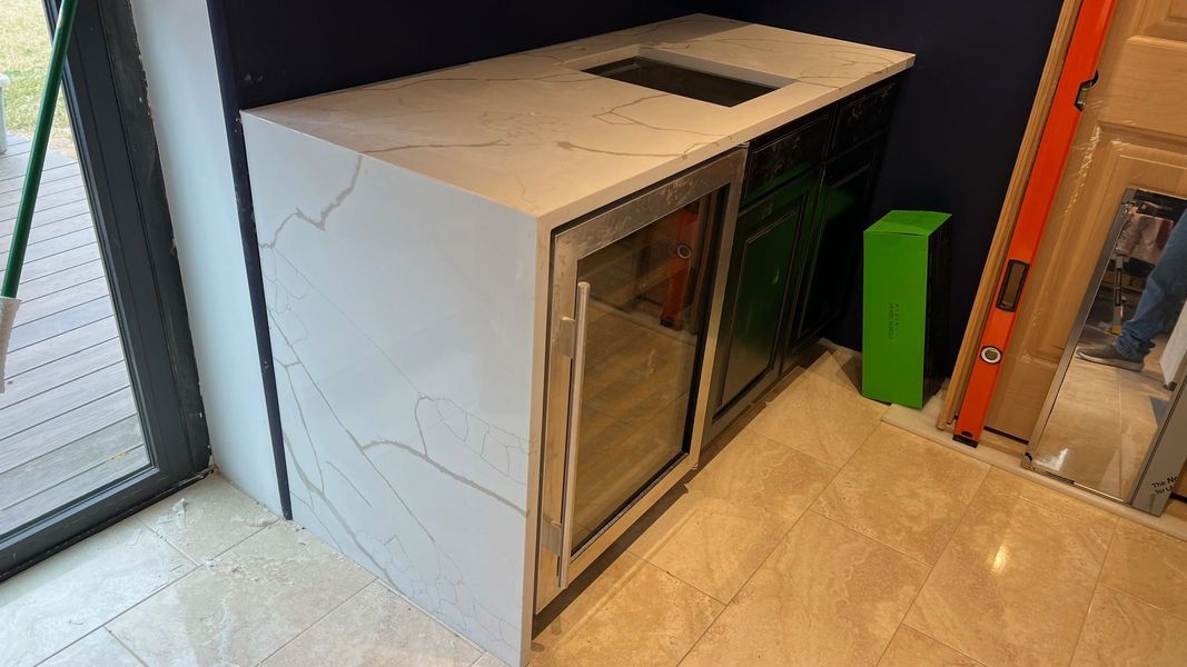 We confirm your material choice (quartz / quartzite / granite), edge profile, sink type, faucet, cooktop, and timeline.