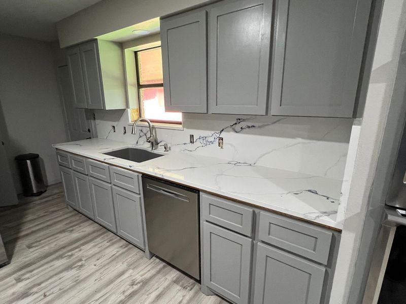 We install and align the backsplash pieces (same day or scheduled separately depending on the project).